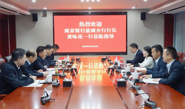10月23日,集團黨委書記、董事長董毅會見南京銀行鹽城分行黃詠花一行,雙方就進一步深化金融合作座談交流。集團黨委副書記、總經(jīng)理陳鳴永參加。2025-10-23